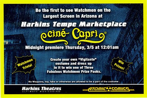 Both Harkins Theaters and Atomic Comics are having a Create Your Own WATCHMEN Vigilante Costume Contest before the midnight showing.