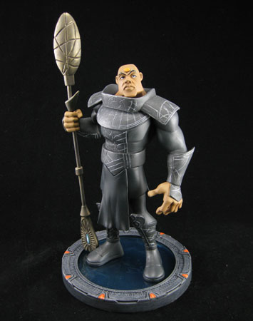 The Teal’c maquette comes posed in full armor and holding his Jaffa staff weapon, a look of defiance captured in this animation-style statue. He comes standing on a base that is a miniaturized, screen-accurate Stargate replica. Limited to just 1,000 pieces, the Teal’c maquette is hand painted and hero sized – standing more than 9 inches tall from the bottom of the base to the top of his staff weapon.